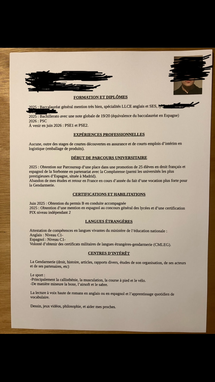 la chose sur laquelle je serais atentif c’est surtout le “centre d’interet : gendarmerie” avec tout ce que tu cites ensuite.