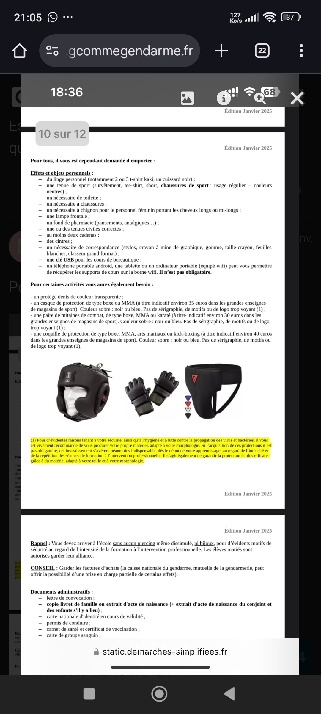 J’ai pas la liste définitive… on devrait la recevoir prochainement mais par exemple ils conseillent de prendre 1 ou 2 treillis perso ce genre de chose.